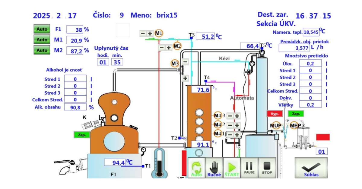 Vezérléseink használatával mintegy 30% energiamegtakarítás és hűtővíz-megtakarítás érhető el.A lepárlórendszer-vezérléseink optimalizálják és összehangolják a fűtést és a deflegmátorok hűtését, ami által az átjutott alkoholpárák minősége és a refluxarány szabályozható.